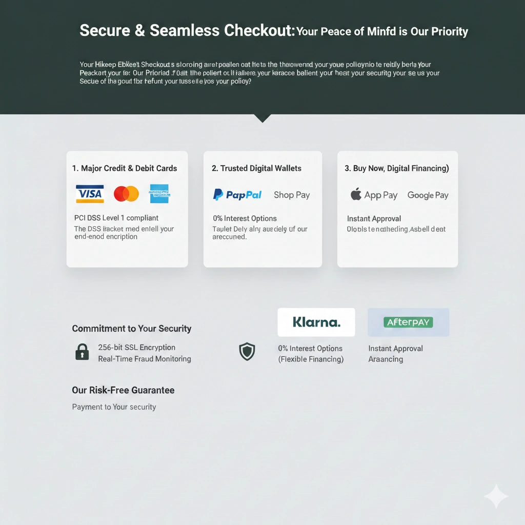 We accept all major credit and debit cards, including Visa, Mastercard, and American Express. Every transaction is protected with the latest encryption technology to keep your payment information safe.
